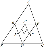 如图,△ABC的周长为64,E、F、G分别为AB、AC、BC的中点,A′、B′、C′分别为EF、EG、GF的中点,△A′B′C′的周长为