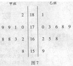 随机抽取某中学甲、乙两班各10名同学,测量他们的身高(单位:cm),获得身高数据的茎叶图如图7。