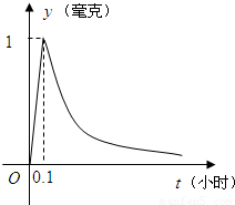 (2)求从药物释放开始,室内每立方米空气中的含药量y(毫克)与时间t(小时)之间的函数关系式;