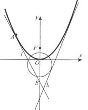 (2)设A是C1上的一动点,以A为切点作抛物线C1的切线l,直线l交y轴于点B,以FA、FB为邻边作平行四边形FAMB,证明:点M在一条定直线上;