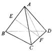 (08年潍坊市七模文) 如图,正四面体ABCD中,E为AB中点,F为CD的中点,则异面直线EF与SA所成的角为( )