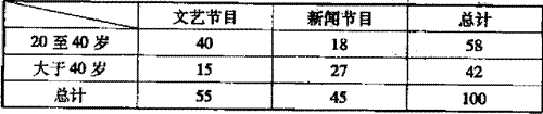 (1)由表中数据直观分析,收看新闻节目的观众是否与年龄有关?(2)用分层抽样方法在收看新闻节目的观众中随机抽取5名,大于40岁的观众应该抽取几名?