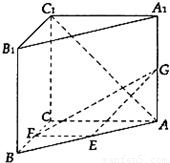 在直三棱柱ABC—A1B1C1中,CA=CB=CC1=2,∠ACB=90°,E、F分别是BA、BC的中点,G是AA1上一点,且AC1⊥EG.