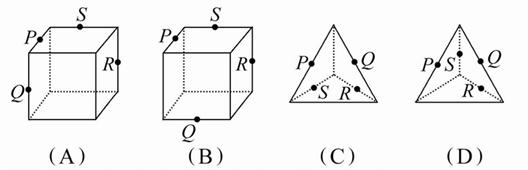 下列各图是正方体或四面体,P、Q、R、S分别是所在棱的中点,这四个点不共面的一个图是