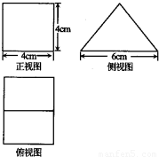 7.一个多面体的三视图分别为正方形.等腰三角形和矩形.如图所示.则该多面体的体积为 ( ) A.24㎝3 B.48㎝3 C.32㎝3 D.28㎝3 查看更多