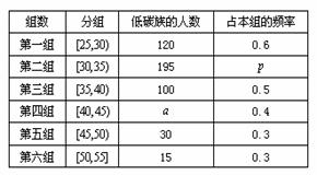 人进行了一次生活习惯是否符合低碳观念的调查,若生活习惯符合低碳观念的称为“低碳族”,否则称为“非低碳族”,得到如下统计表和各年龄段人数频率分布直方图: