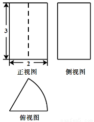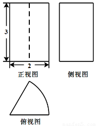 某由圆柱切割获得的几何体的三视图如图所示,其中俯视图是中心角为