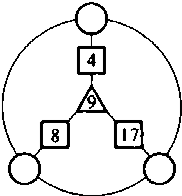 请你将1~9九个数字填入“数学花”上的各个小圆圈里,使每条直线上三个数的和都等于18.