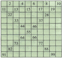 给个位是3的数涂上红色,给十位是3的数涂上黄色,给个位和十位数学相同的数涂上蓝色。(2)