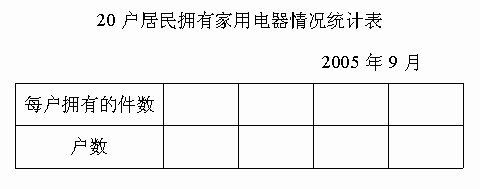 20户居民家用电器拥有情况进行了调查,结果如下:拥有4件的3户,拥有5件的2户,拥有6件的9户,拥有7件的6户.请你根据以上的调查情况,把下面的统计表填写完整.![]()