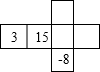 如图所示是一个正方体纸盒的展开图,请把8,-3,15分别填入余下的四个正方形中,使得按虚线折成正方体后,相对面上的两个数互为相反数.