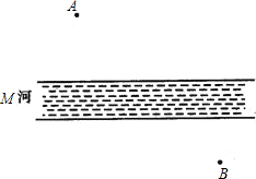 我国“十一五”规划其中一重要目标是,建设社会主义新农村,国家对农村公路建设投资近1000亿人民币.西部的某落后山村准备在河流M上架上一座桥梁,如图所示,桥建在何处才能使A,B两个村庄的之间修建路面最短?