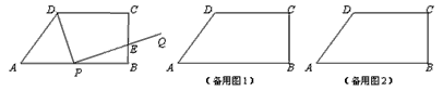 如图,梯形ABCD中,AB∥CD,∠ABC=90°,AB=8,CD=6,BC = 4,AB边上有一动点P(不与A、B重合),连结DP,作PQ⊥DP,使得PQ交射线BC于点E,设AP=x.![]()