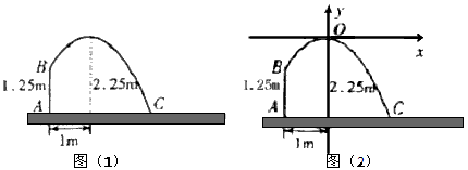①以水流的最高点为原点,过原点的水平线为横轴,过原点的铅垂线为纵轴,建立如图2所示的平面直角坐标系;