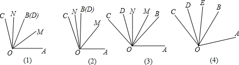 (3)如图(4),若α=2β,∠COD绕O逆时针旋转,转速为3゜/秒,∠AOB绕O同时逆时针旋转,转速为
