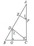 已知:如图,DG⊥BC,AC⊥BC,EF⊥AB,∠1=∠2,求证:CD⊥AB。