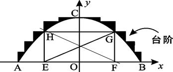(2)在拱桥加固维修时,搭建的“脚手架”为矩形EFGH(H、G分别在抛物线的左右侧上),并增加铺设斜面EG和HF,已知矩形EFGH的周长为27.5 m, 求增加斜面的长。