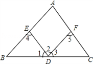 如图,(1)∵∠A= _________ (已知)∴AC∥ED( _________