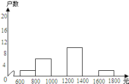 (4)请你估计该村庄家庭收入属于中等水平(不足1600元,不低于1000元)的大约有多少户?