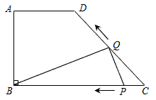 如图,在直角梯形ABCD中,AD∥BC,∠B=90°,AD=6cm,AB=8cm,BC=14cm.动点P、Q都从点C出发,点P沿C→B方向做匀速运动,点Q沿C→D→A方向做匀速运动,当P、Q其中一点到达终点时,另一点也随之停止运动。
