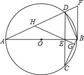 如图,AB为⊙O的直径,弦CD与AB相交于E,DE=EC,过点B的切线与AD的延长线交于F,过E作EG⊥BC于G,延长GE交AD于H.