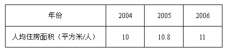 | 人均住房面积(平方米/人) | 10 | 10.8 | 11 |