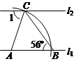 如图,直线l1∥l2,以直线l1上的点A为圆心、适当长为半径画弧,分别交直线l1、l2于点B、C,连接AC、BC.若∠ABC=56º,则∠1= ( )![]()