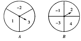 有两个可以自由转动的转盘A、B,转盘A被分成3等份;转盘B被分成4等份,数字标注如图所示,有人设计了一个游戏,其规则如下:甲、乙两人同时转动两个转盘,转盘停止后,指针各指向一个数字,将转得的数字相乘,如果积为偶数,则甲胜;如果积为奇数,则乙胜。(若指针落在分格线上,则无效,需重新转动转盘)