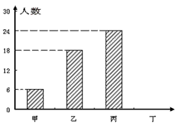 为迎接建党90周年,我市某中学拟组织学生开展唱红歌比赛活动。为此,团委对初四一班会唱红歌的学生人数进行了统计(甲:会唱1首;乙:会唱2首;丙:会唱3首;丁:会唱4首以上),并绘制了如下两幅不完整的统计图。请你根据图中提供的信息解答以下问题: