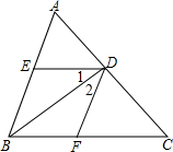 如图,∠ABD=∠CBD,DFAB,DEBC,则∠1与∠2的大小关系是______.