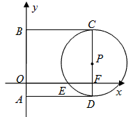 已知:如图,在直角坐标系xoy中,点A(2,0),点B在第一象限且△OAB为正三角形,△OAB的外接圆交y轴的正半轴于点C,过点C的圆的切线交x轴于点D.![]()