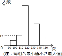(3)如果这次测试成绩中的中位数是120次,那么这次测试中,成绩为120次的学生至少有多少人?![]()