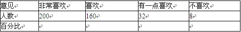 | 意见 | 非常喜欢 | 喜欢 | 有一点喜欢 | 不喜欢 |