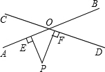 (2000•安徽)已知:如图,直线AB、CD相交于点O,PE⊥AB于点E,PF⊥CD于点F,如果∠AOC=50°,那么∠EPF=    度.