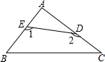 如图,△ABC中,∠A=80°,剪去∠A后,得到四边形BCDE,则∠1+∠2=