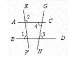 如图,∠1=82°,∠2=98°,∠3=80°,则∠4=(     ).