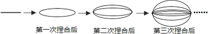 10、喜欢吃拉面吗?拉面馆的师傅,用一根很粗的面条,把两头捏合在一起拉伸,再捏合,再拉伸,反复几次,就把这根很粗的面条拉成了许多细的面条,如图所示,这样捏合到第
