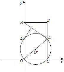 19、如图,在平面直角坐标系中,矩形ABCO的面积为15,且OA=OC+2,E为BC的中点,以OE为直径的⊙O′交y轴于D点,过D作DF⊥AE于点F.