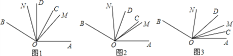 ②如图3,若旋转后OC恰好为∠MOA的角平分线,试探究∠NOD与∠MOC的数量关系.