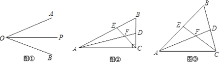 如图①,OP是∠MON的平分线,请你利用该图形画一对以OP所在直线为对称轴的全等三角形。请你参考这个作全等三角形的方法,解答下列问题:
