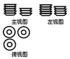 学校食堂厨房的桌子上摆放着若干碟子,分别从三个方向上看,其三视图如右图所示,则桌子上共有碟子