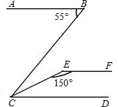 如图,ABCDEF,∠ABC=55°,∠CEF=150°,求∠BCE的度数.