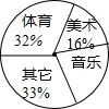 13、某校对1000名学生进行“个人爱好”调查,调查结果统计如图,则爱好音乐的学生共有