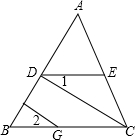 已知,如图,CD⊥AB,GF⊥AB,∠B=∠ADE,试说明∠1=∠2.