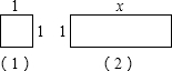 很多代数原理可以用几何模型解释,用图(1)来表示1×1的正方形面积,它的长和宽都是一个单位,用图(2)来表示1×x的矩形的面积,它的宽是一个单位,长是x个单位。请你用上述若干个1×1的正方形和若干个1×x的矩形来拼出3(x+2)和3x+2(要求画出简单的示意图,且使得拼出的图形为矩形),由此请你简单地加以说明这两个代数式的不同之处