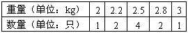 为了发展农业经济,致富奔小康,养鸡专业户王大伯2004年养了2000只鸡,上市前,他随机抽取了10只鸡,称得重量统计如下表: 估计这批鸡的总重量为(        )kg。(用科学记数法表示)
