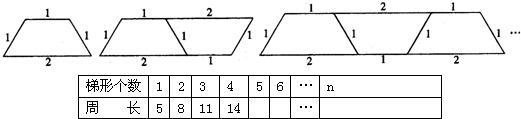 | 梯形个数 | 1 | 2 | 3 | 4 | 5 | 6 | … | n |