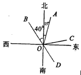 如图,OA的方向是北偏东15°,OB的方向是北偏西40°.