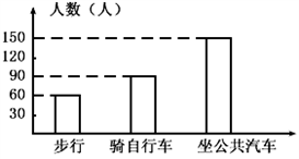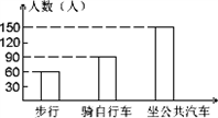 | A、步行人数最少只为90人 | B、步行人数为50人 | C、坐公共汽车的人数占总数的50% | D、步行与骑自行车的人数和比坐公共汽车的人数要少 |