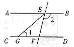 如图,AB∥CD,直线EF分别交AB、CD于点E、F,EG平分∠AEF,∠1=40°,则∠2的度数为___.![]()